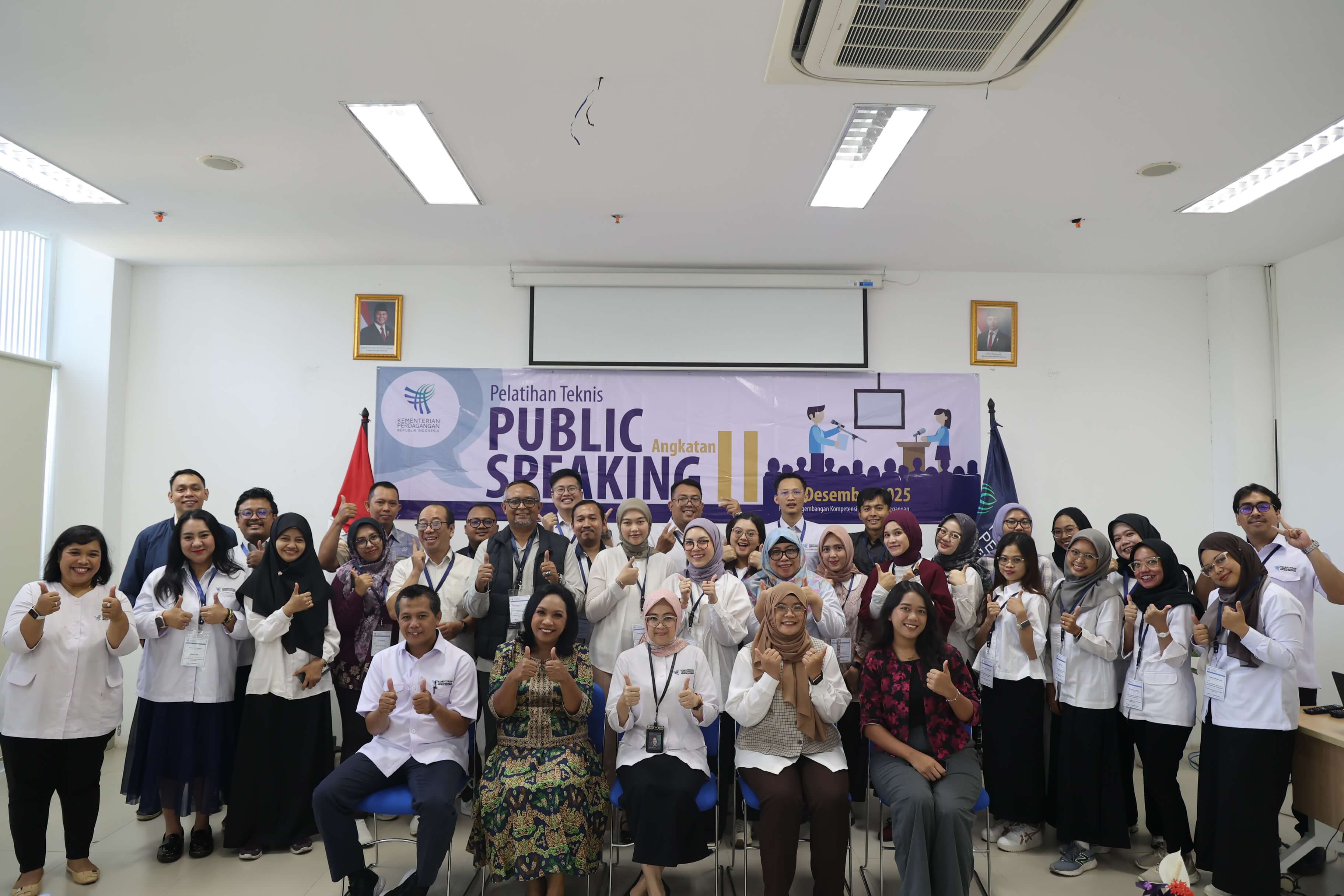 Sebagai salah satu upaya untuk meningkatkan kompetensi komunikasi ASN Perdagangan, Pusbangkom Aparatur Perdagangan (Pusbangkom AP) menyelenggarakan Pelatihan Teknis Public Speaking Angkatan II pada 1–5 Desember 2025 . Sebanyak 28 peserta yang berasal dari berbagai unit kerja di lingkungan Kementerian Perdagangan dan Dinas yang membidangi perdagangan di daerah mengikuti pelatihan ini secara klasikal di Pusbangkom Aparatur Perdagangan, Depok.